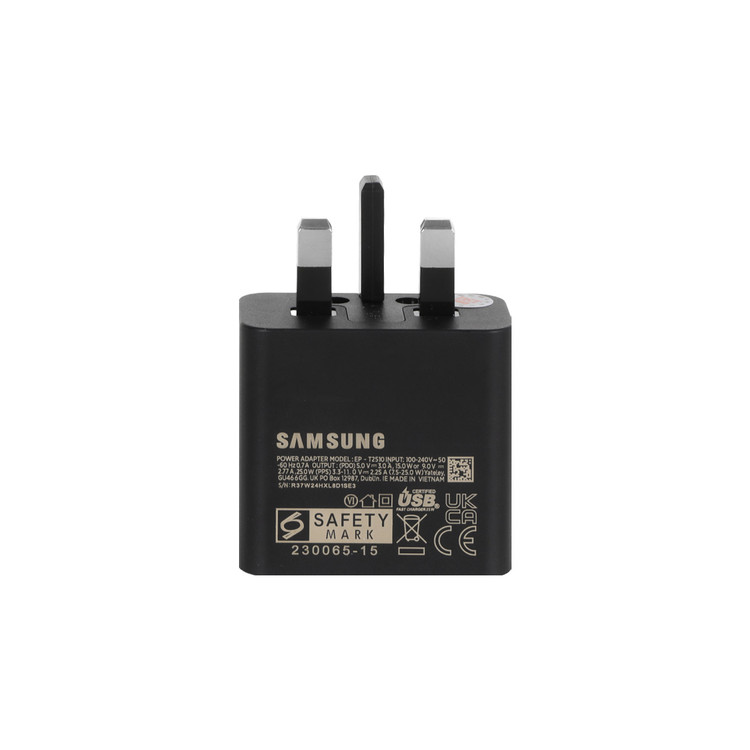 شارژر سامسونگ مدل EP-T2510 25W سه پین 100% اورجینال ساخت ویتنام سریال دار و تگ NFC همراه تبدیل 3 به 2 هدیه